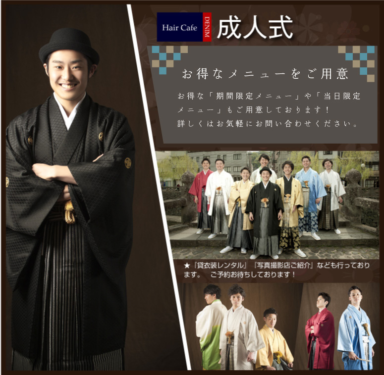 成人式メニューは期間限定となります。※詳しくは下記ご連絡先までスタッフまでお問合せください。